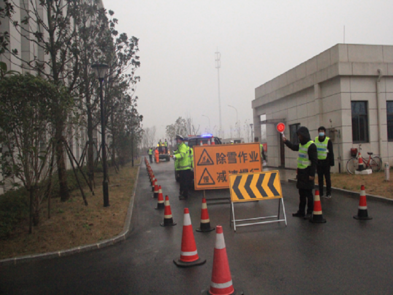 本次演練以接交警指令,銀湖路匝道積雪,需臨時封道清除積雪為背景,采取桌面推演與實戰(zhàn)演練相結(jié)合。共分為三個環(huán)節(jié),先是通過電子屏幕作銀湖路臨時封道作業(yè)桌面推演,全面展示交通應(yīng)急力量應(yīng)對多樣災(zāi)種綜合應(yīng)急處置能力。再到情報板信息發(fā)布模擬演練,針對路面積雪情況變化及時同步更新情報板提示信息,配合啟用高音喇叭提醒過往車輛。最后進行道路除雪實操演練,指令下達后,應(yīng)急人員、機械車輛迅速趕到園區(qū)北側(cè)輔路集結(jié)完畢,在交管車輛的指引下,向模擬積雪路段行進,開始投入緊張的除雪鏟冰作業(yè)當中。