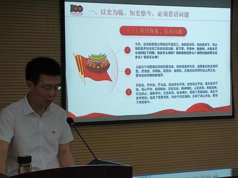 夏峰董事長以“以百年黨史砥礪初心使命在新征程上行大道擔大任成大器”為題講授專題黨課。報告從看清問題、守道明理、堅定理想、明德修身、擔當作為五個方面勉勵公司全體干部員工作為新時代的建設者,要從百年黨史中汲取奮進力量,從過往的足跡中獲得啟示,初心不改、信仰不墜、使命不忘,共同以臨淵履冰的敬畏之心扛起新時代高質量發(fā)展的重任。